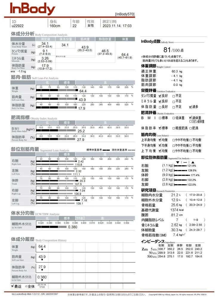 症例No.00162|95.8kg→85.0kg(30代女性・160cm)