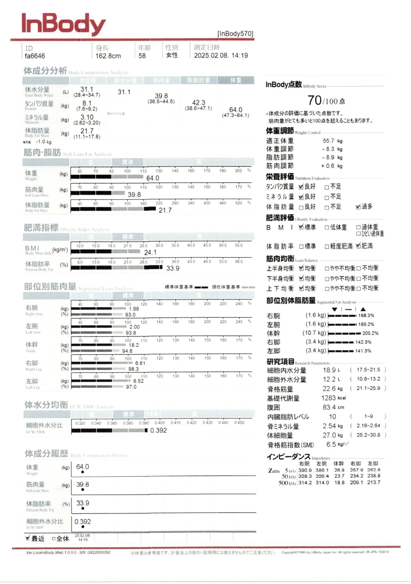 症例No.00162|95.8kg→85.0kg(30代女性・160cm)
