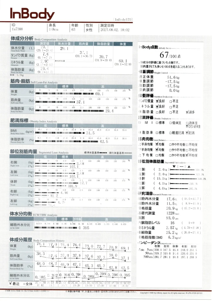 症例No.00174|79.7kg→69.1kg(60代女性・148cm)