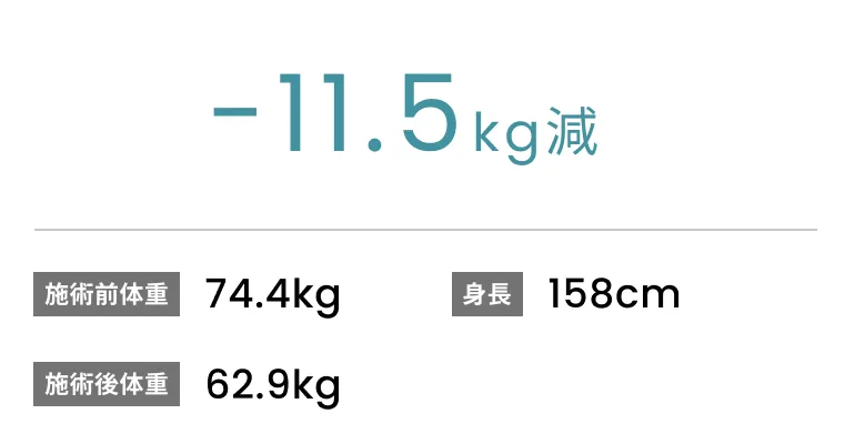 症例No.00187|74.4kg→62.9kg(30代女性・158cm)