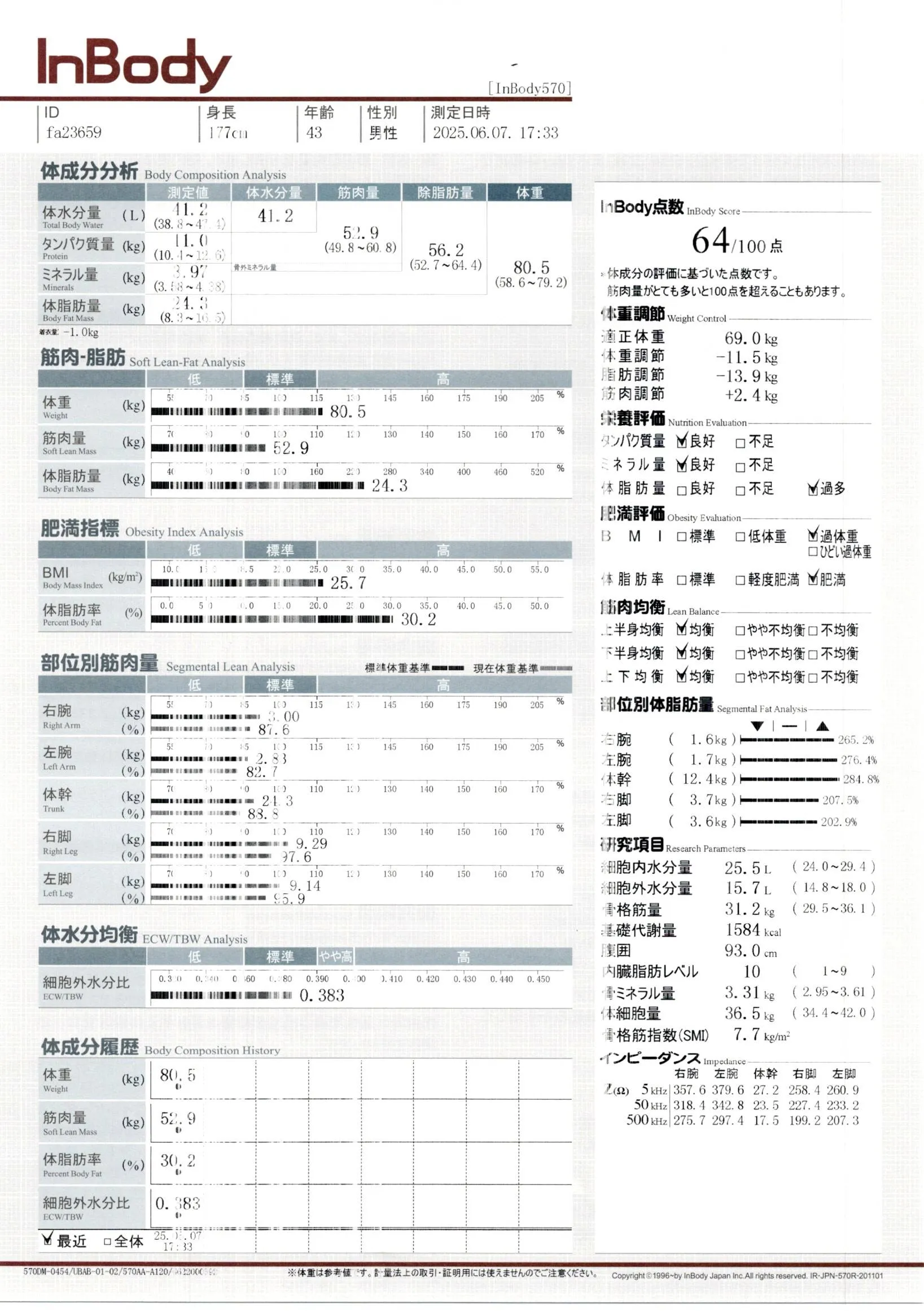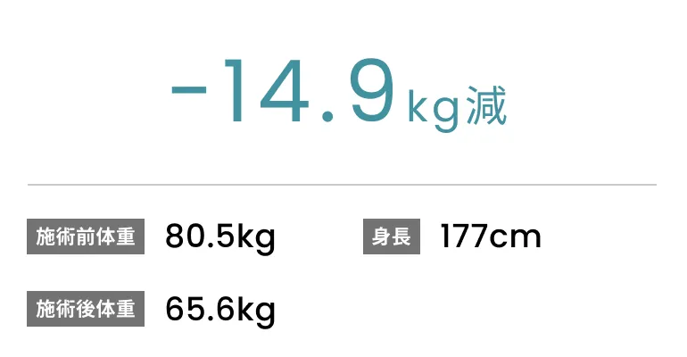 医療痩身・医療ダイエットの症例No.00180|80.5kg→65.6(40代男性・177cm)