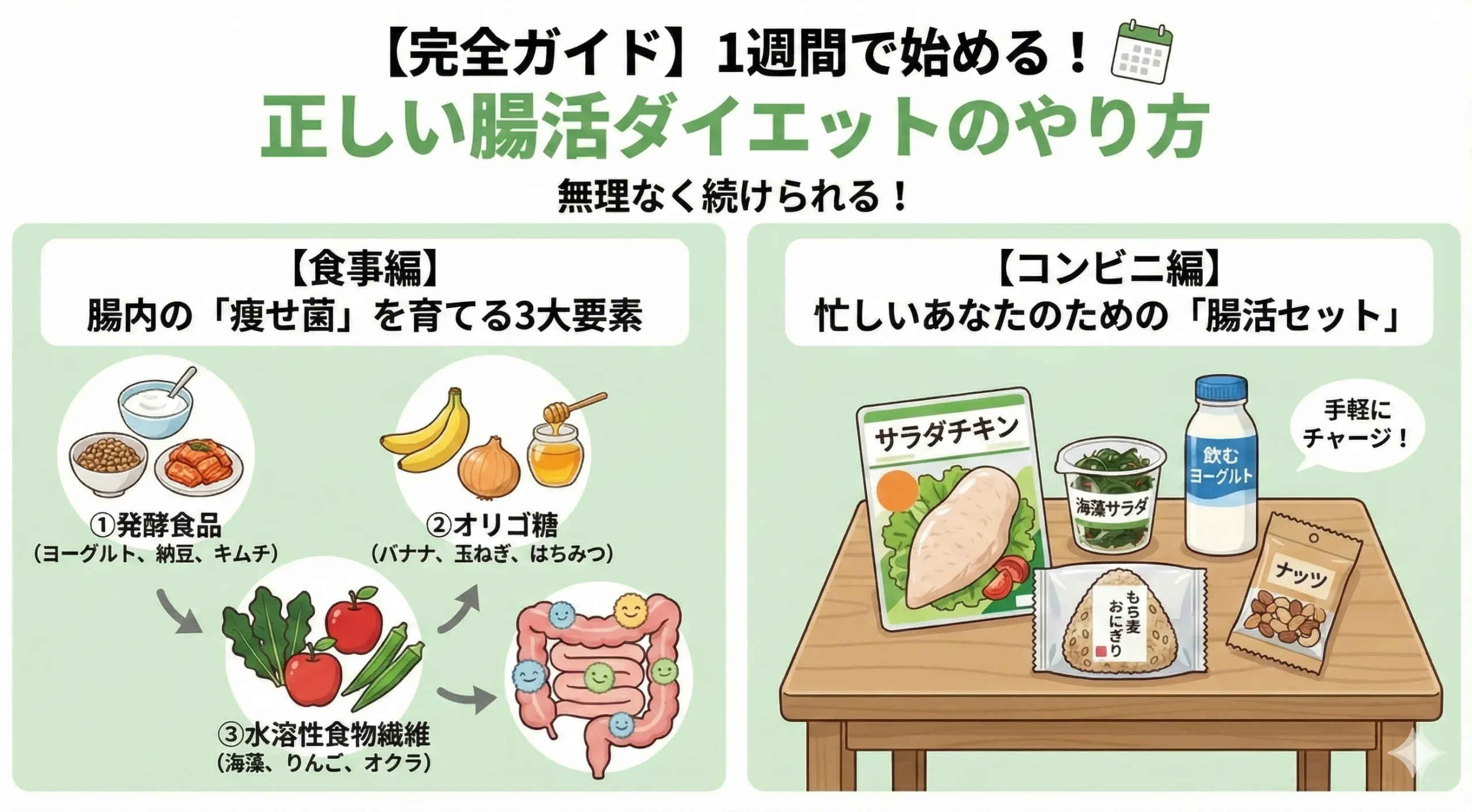 【医師監修】腸活ダイエットは本当に痩せる?痩せない原因と、1週間で始めるやり方(食事・コンビニ)を解説