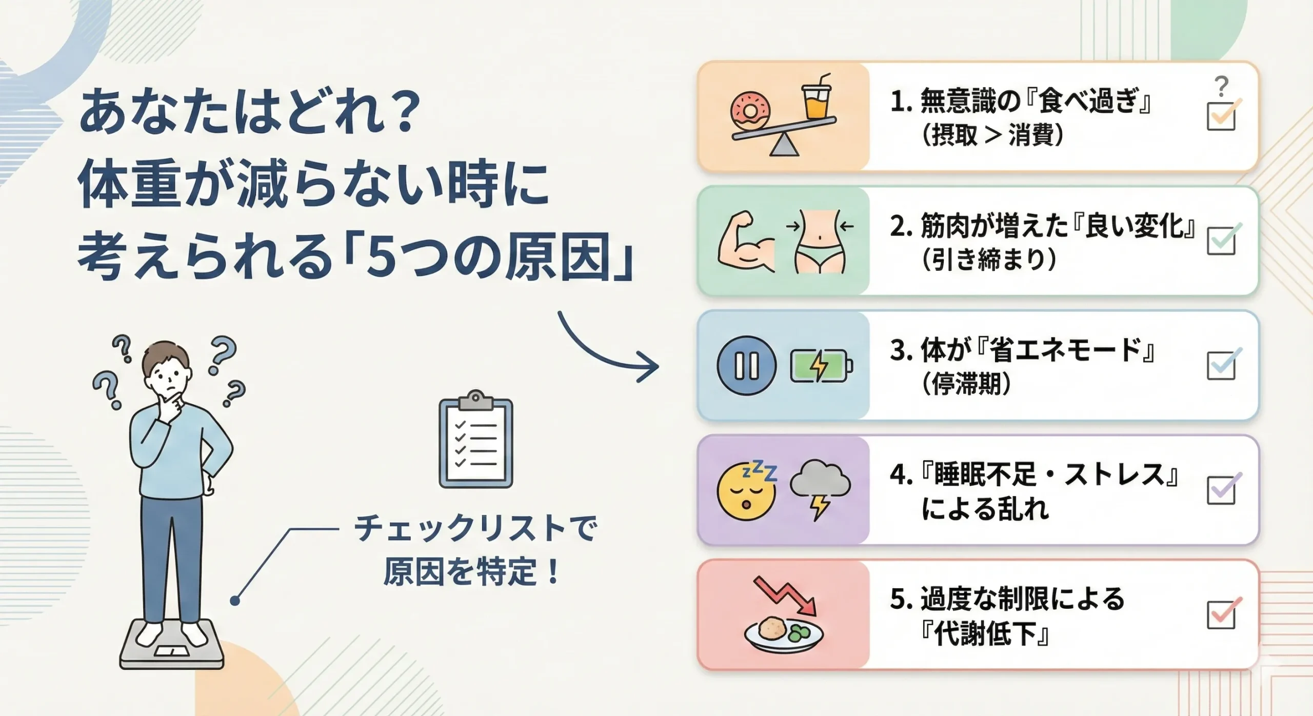 - なぜ?体重が減らない・むしろ増える、5つの根本原因